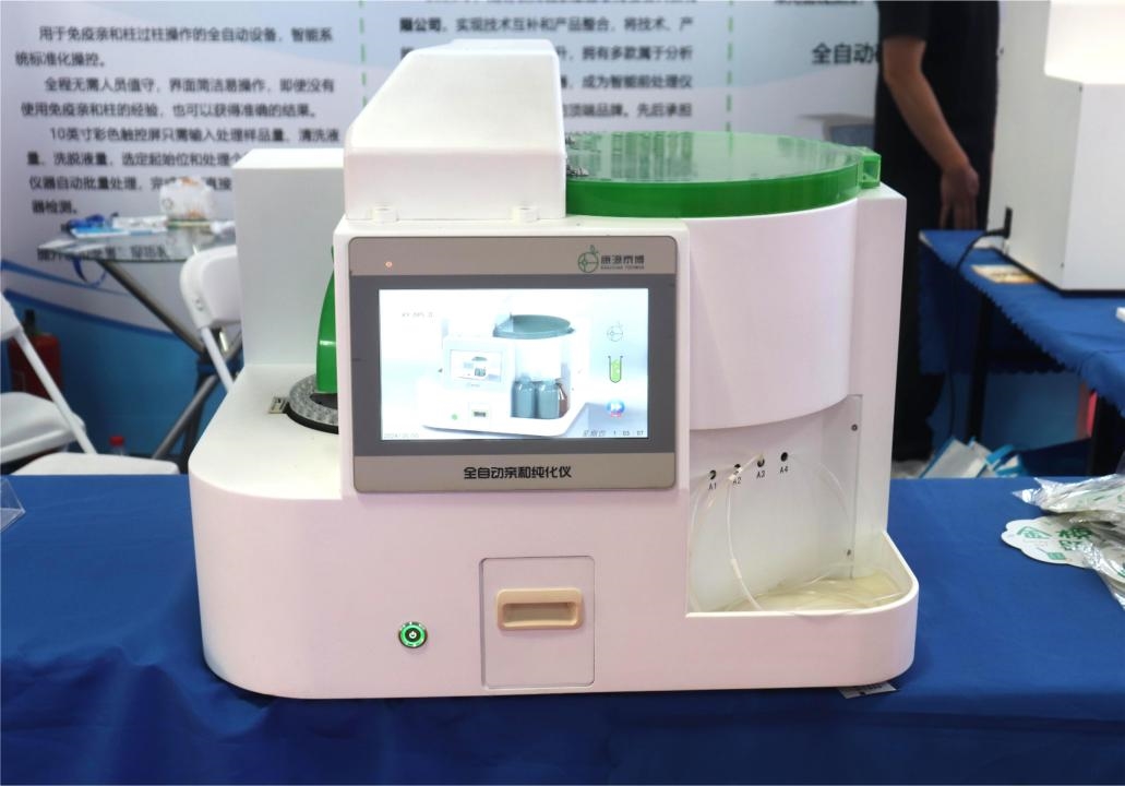 中科堃騰展出的這款全自動(dòng)親和純化儀 KY-APS(以下簡(jiǎn)稱: KY-APS),是一種用于免疫親和柱過(guò)柱操作的全自動(dòng)設(shè)備,是中科堃騰針對(duì)免疫親和柱過(guò)柱速度要求高,樣品基質(zhì)多對(duì)過(guò)柱流程的影響等多種特點(diǎn),而自主研發(fā)生產(chǎn)的全自動(dòng)處理設(shè)備。