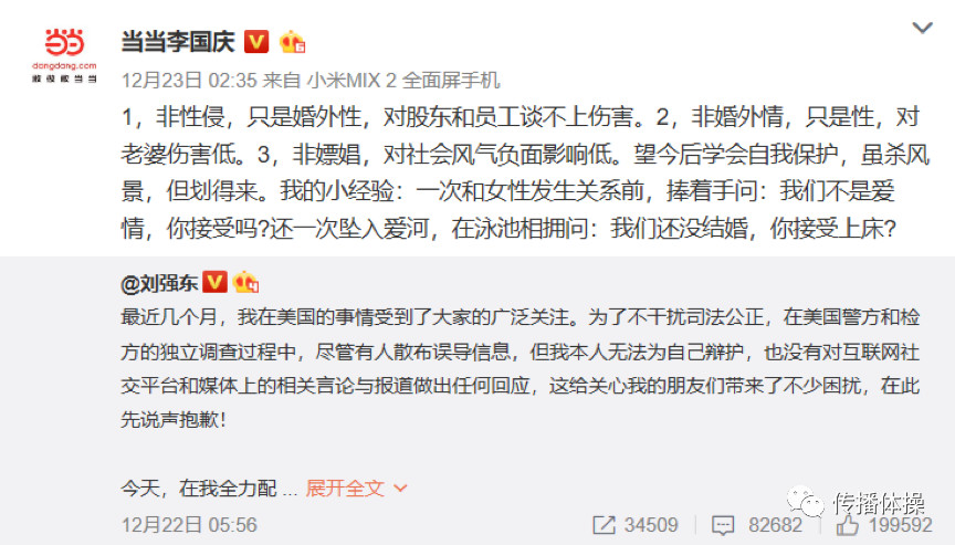 大家都知道今年科技圈的年度大瓜就是京東劉強東性侵事件,近期的劉強東律師公開信讓這則**新聞走向明晰起來,劉強東也在沉默多日之后,于12月22日發(fā)布了一條“致歉”微博。